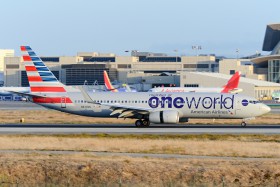 Jedno ze dvou letadel Qantasu nosících livery, které propaguje členství v letecké alianci OneWorld.