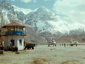 Tajik airport in altitude approximately 2000 metres. One of the most difficult approach to 1840x49m 16/34 RWY is possible due to high mountains arround VFR and from one side only